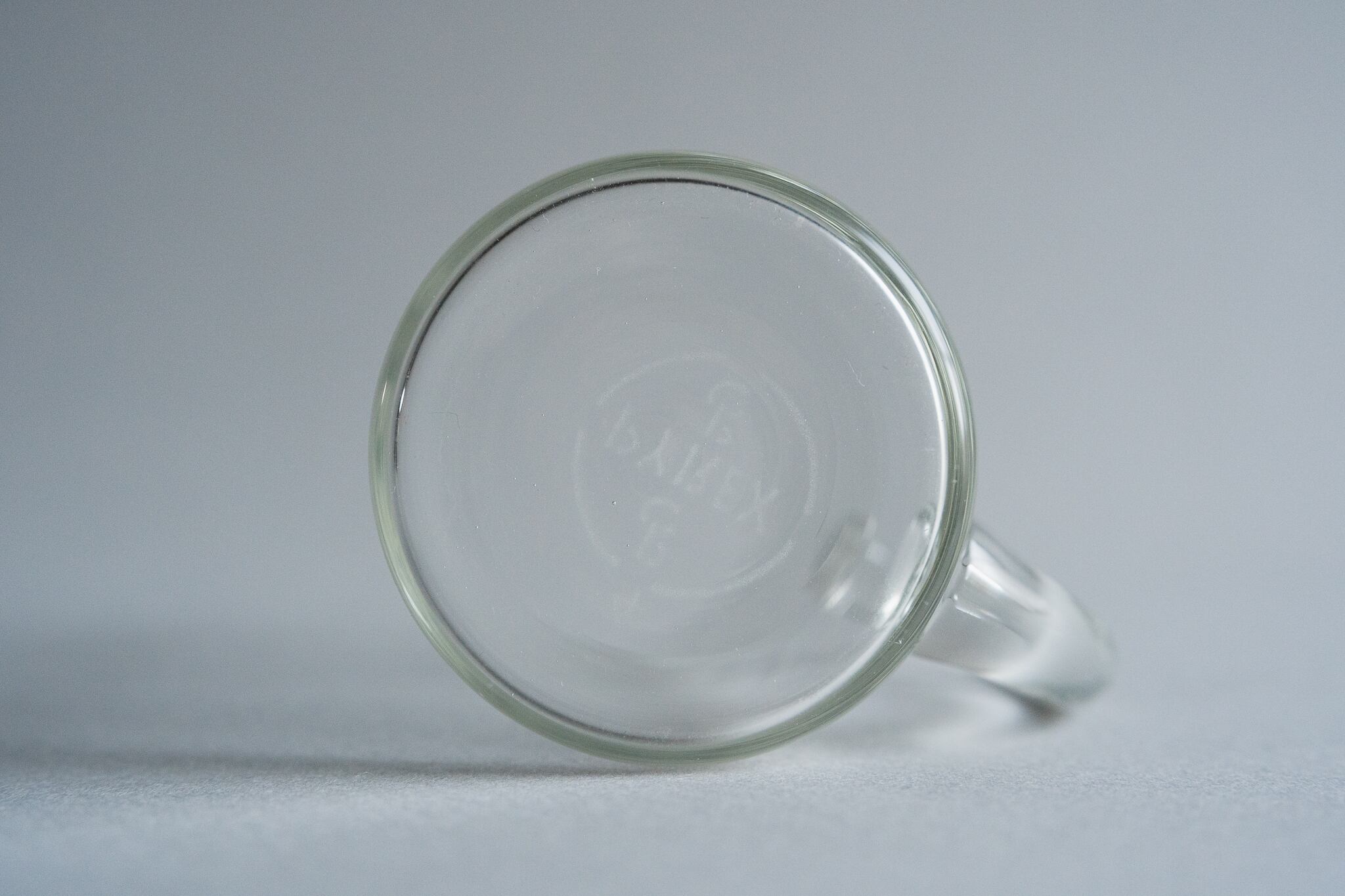 繊細な佇まいに対して、ポテっとした可愛らしい取っ手の対比が美しいアンティークのPYREXです。