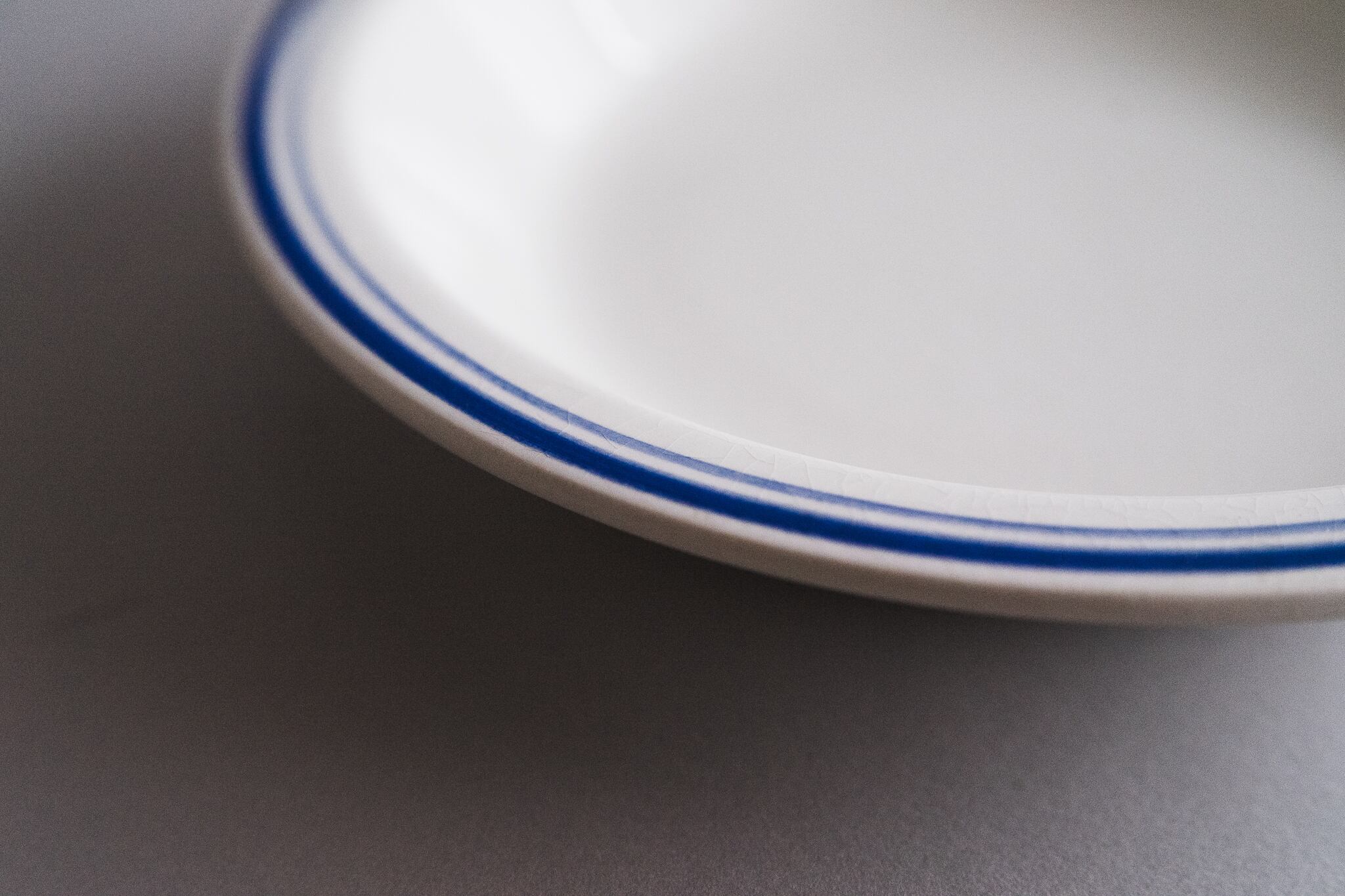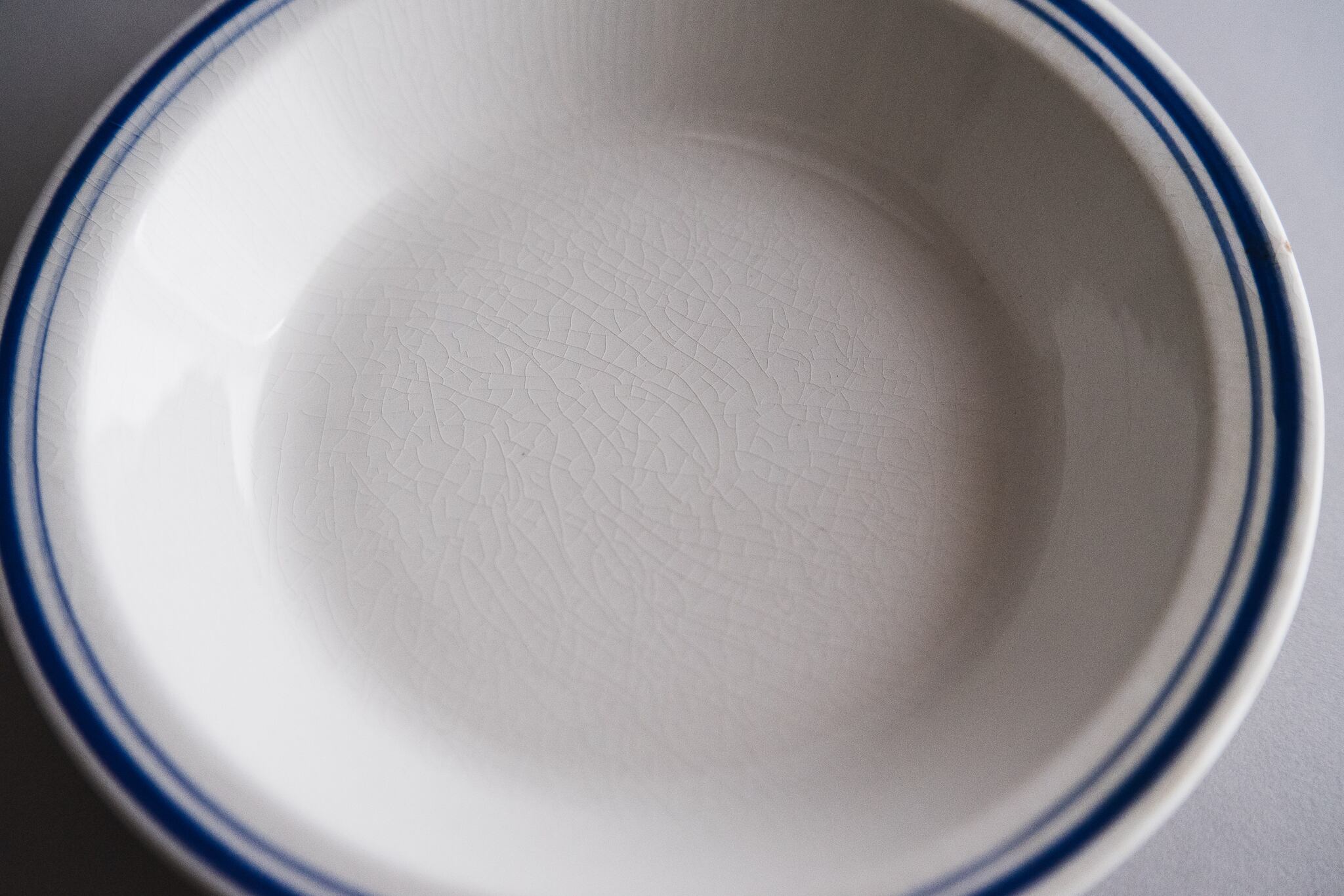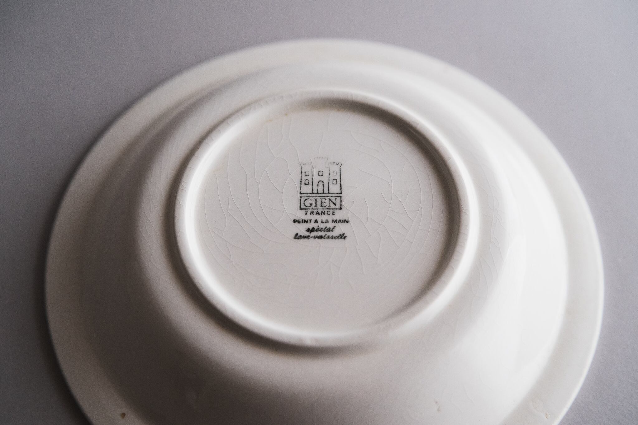縁取りのブルーの濃淡が美しい、19世紀後期に作られ、1821年に創業したMADE IN FRANCEのGIANという釜で作られたお皿です。