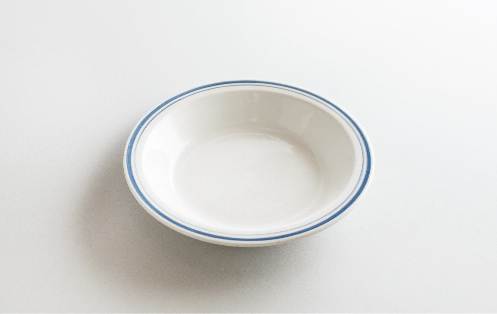 軽く硬く丈夫で手にしっくりなじみ、シンプルなブルーの縁取りで全体的に上品な雰囲気です。