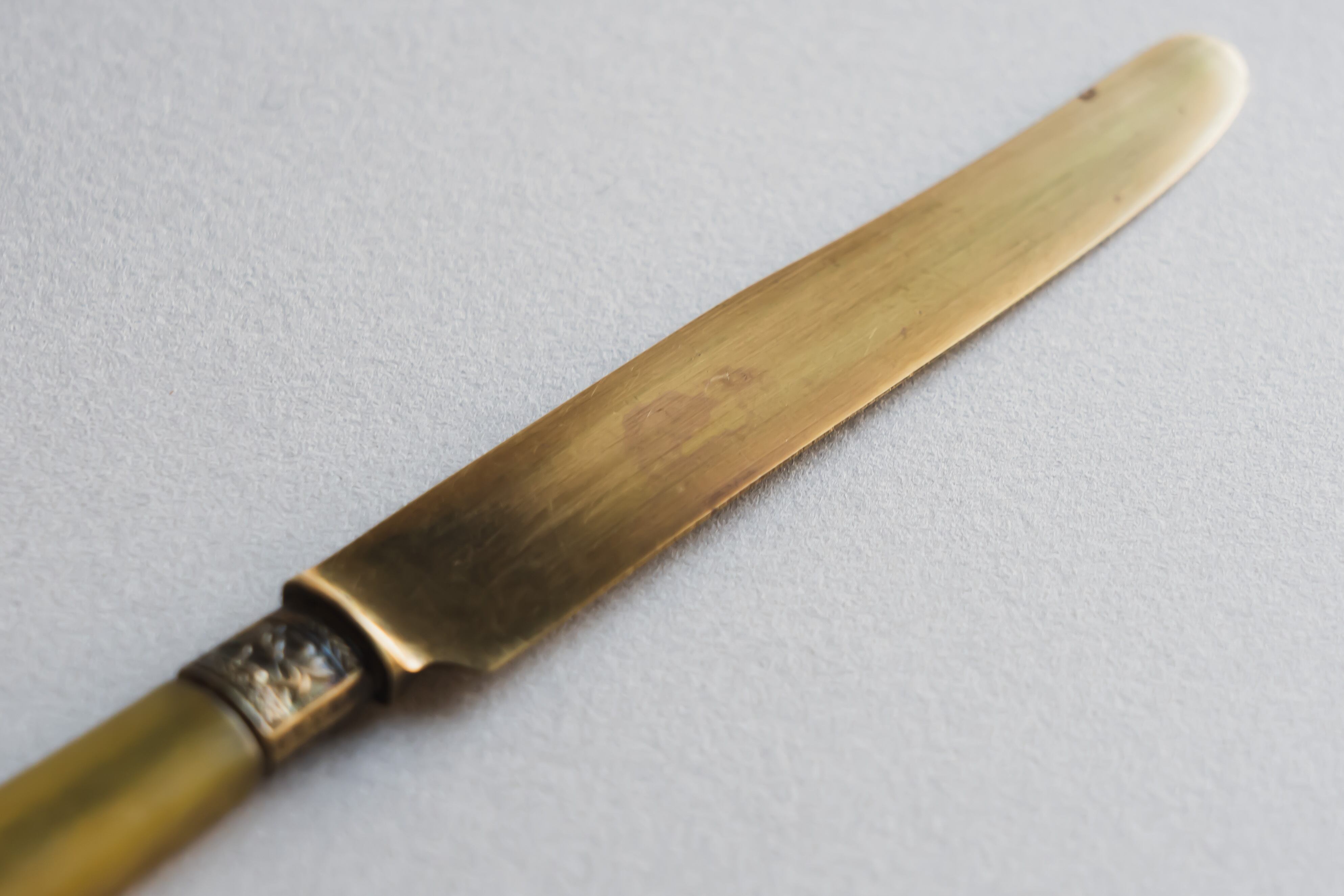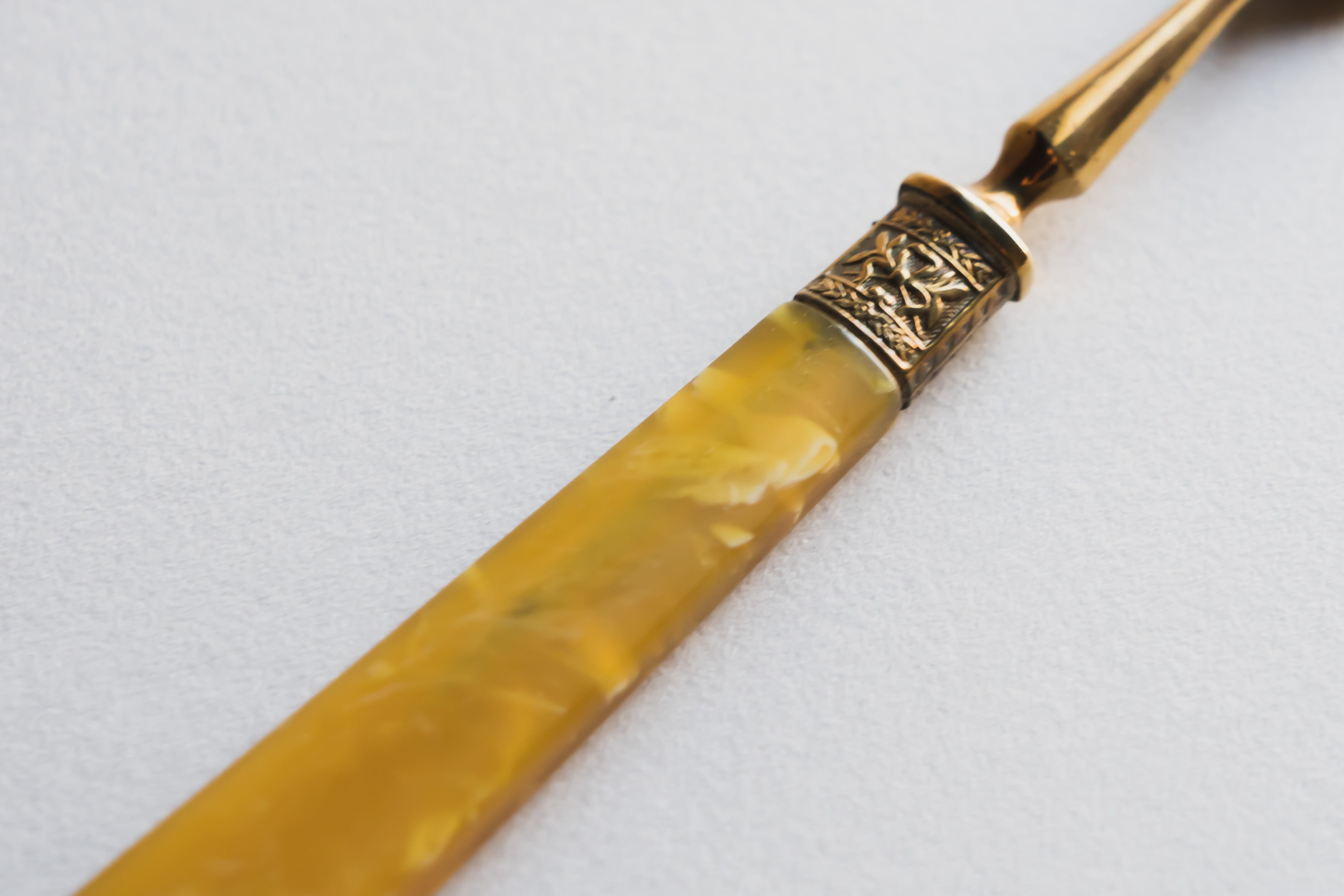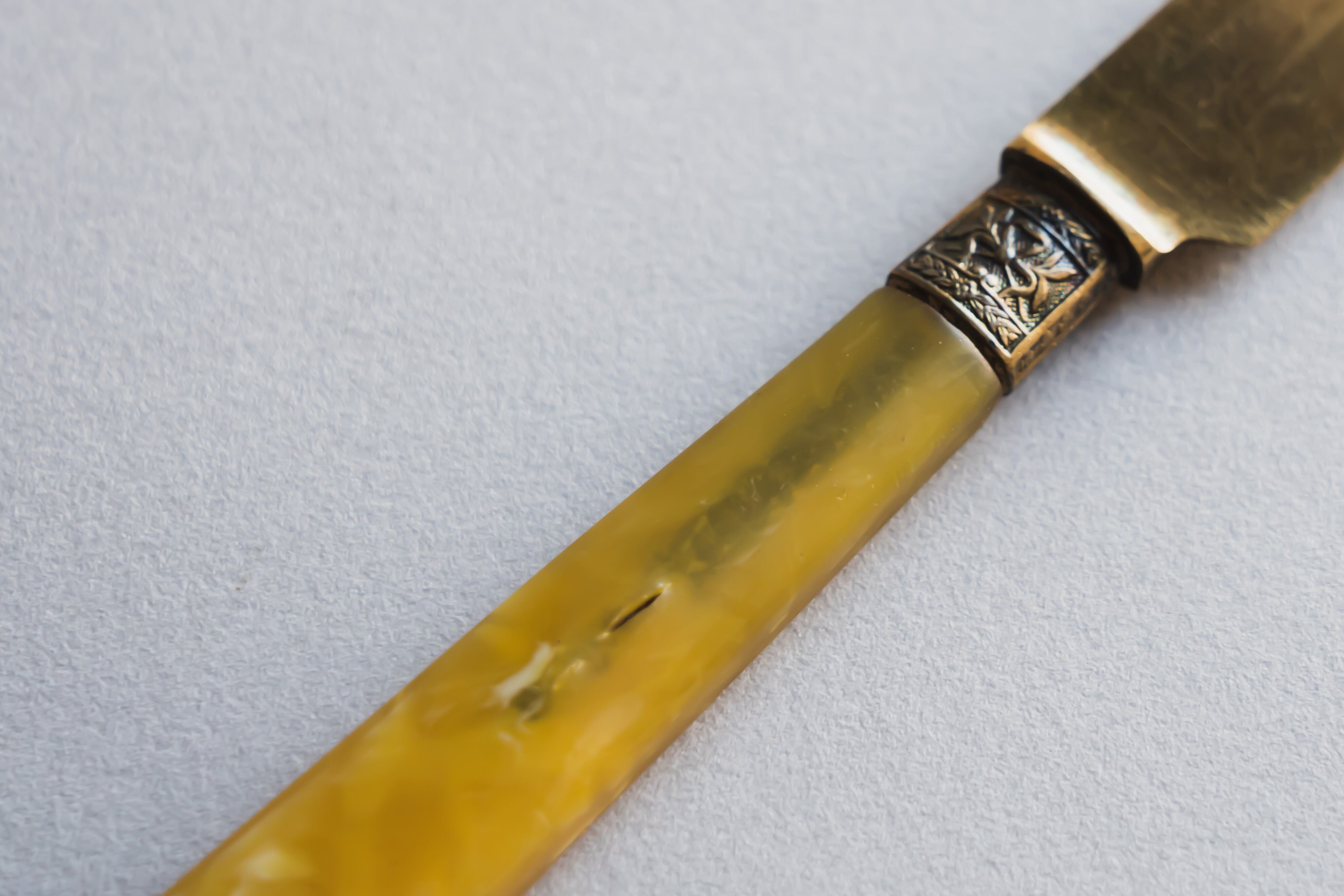 琥珀色の持ち手とライトゴールドの刃が上品なアンティークです。