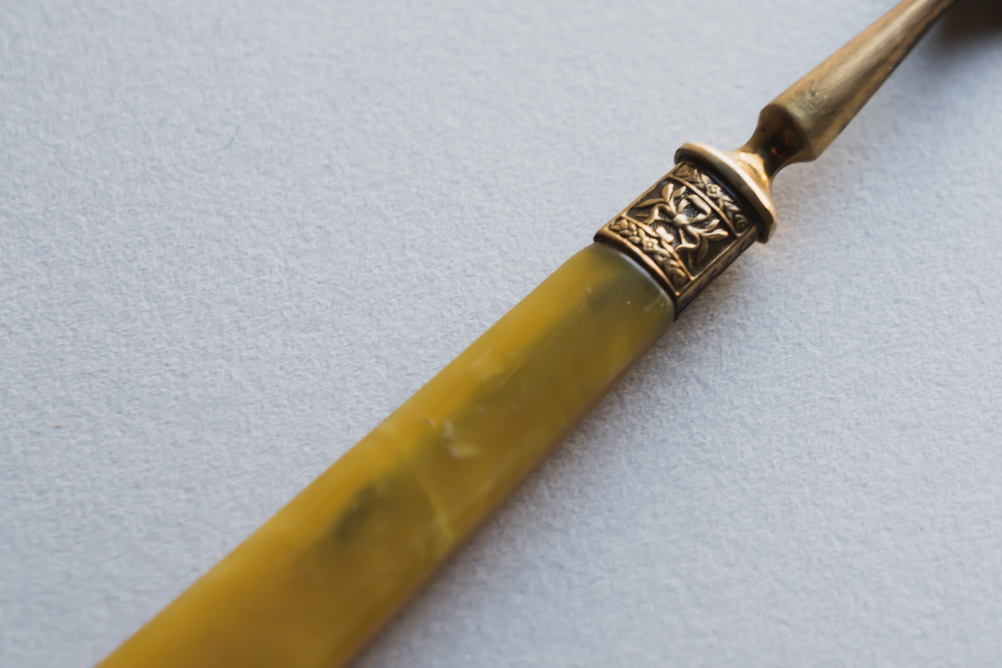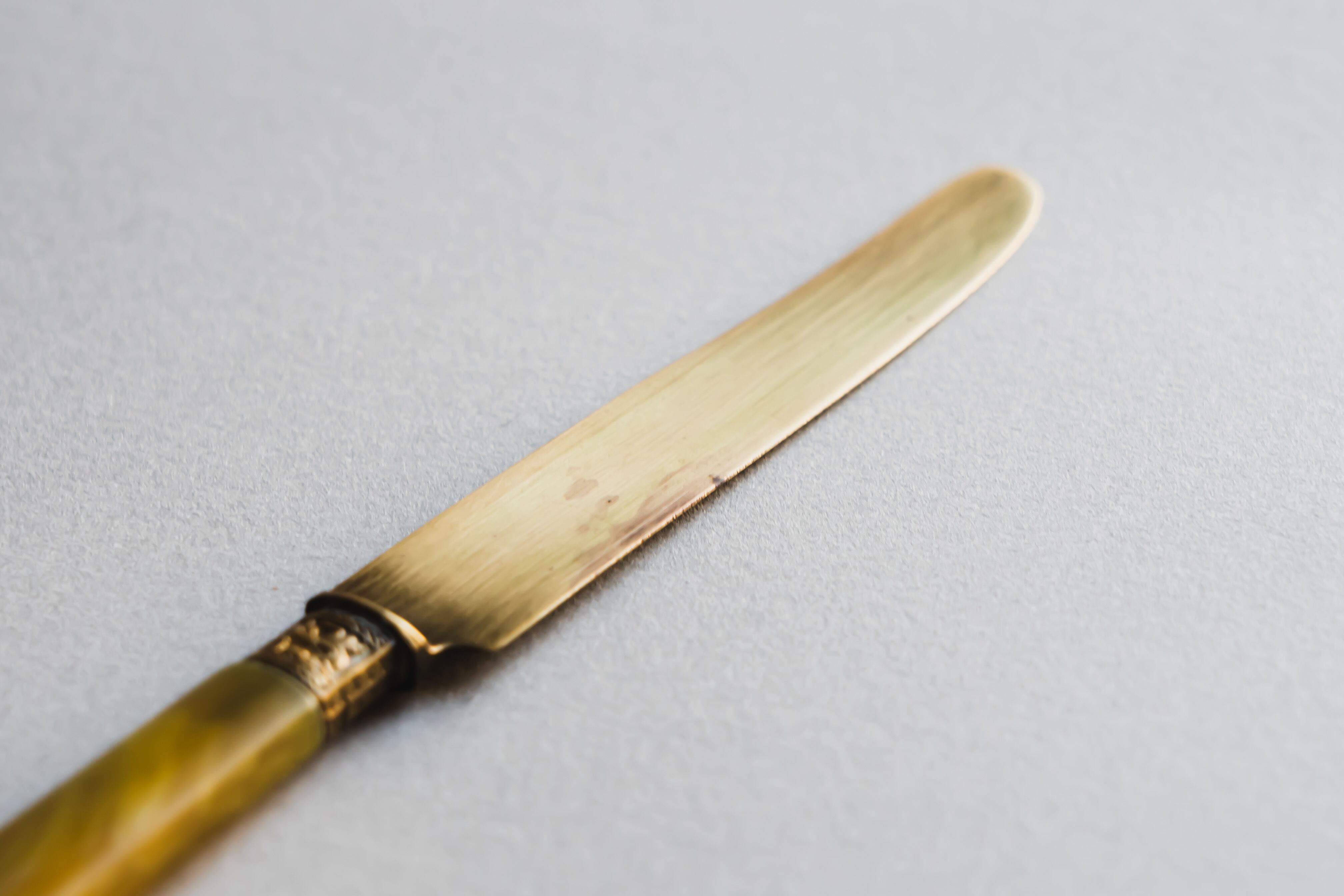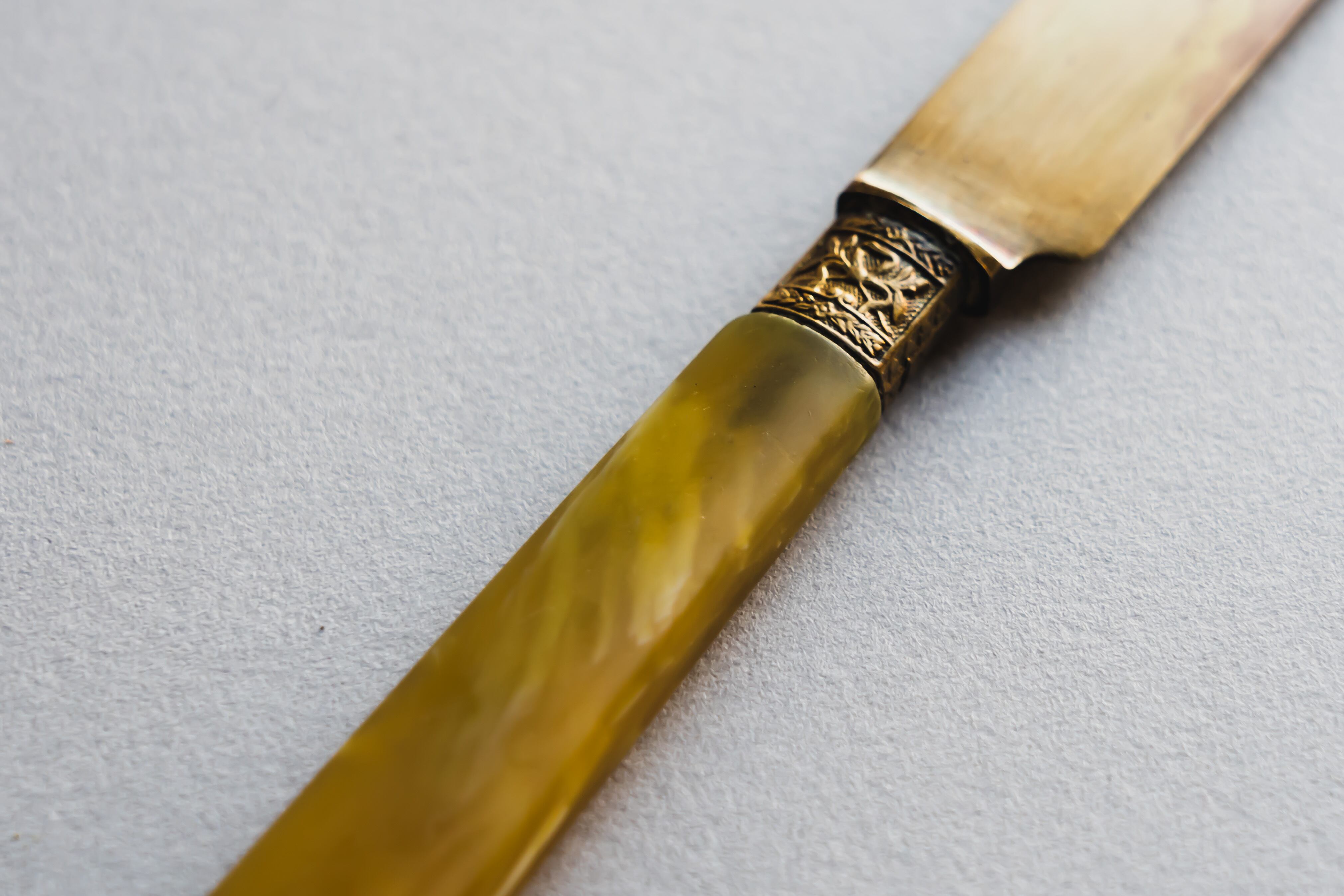 琥珀色の持ち手とライトゴールドの刃が上品なアンティークです。