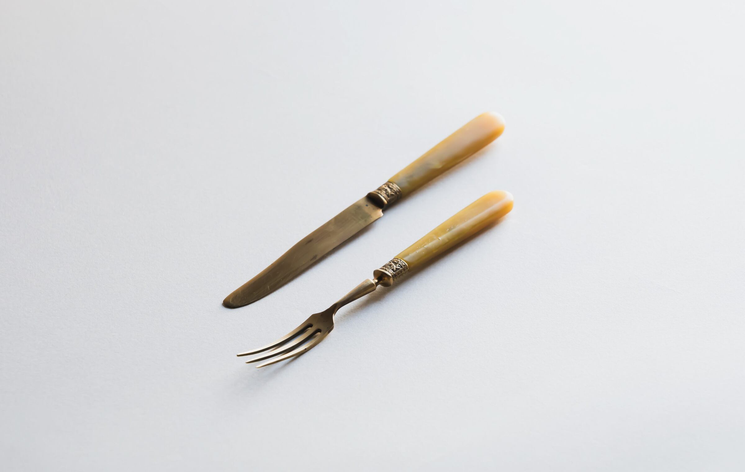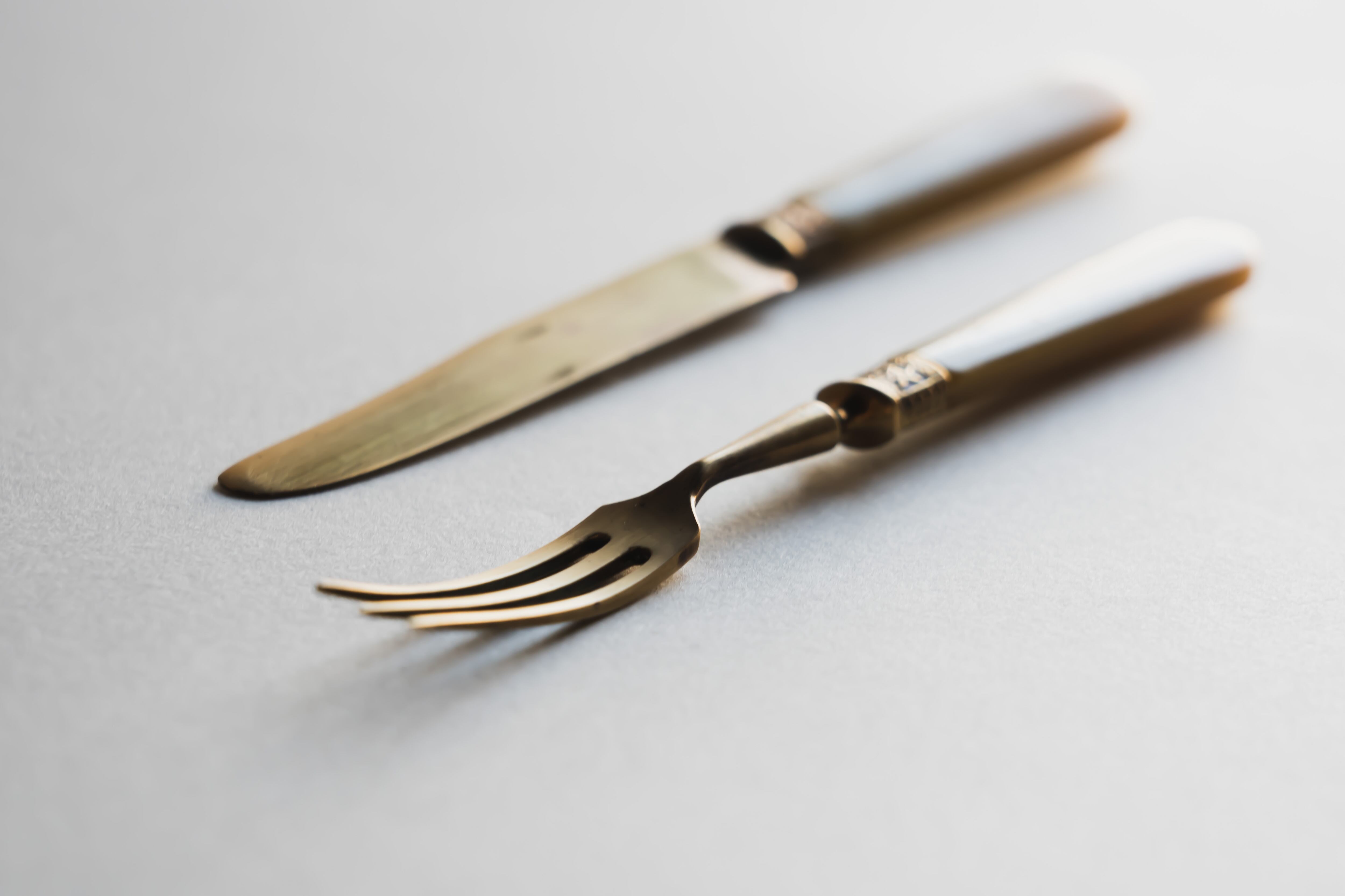 19世紀後半から20世紀初期に作られたデザートナイフとフォークのペア。